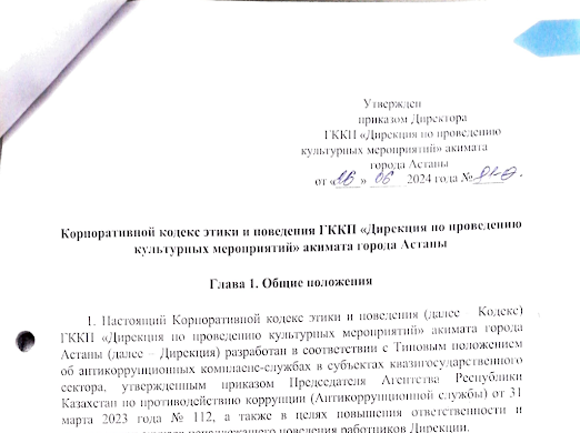 - Корпоративный кодекс этики и поведения №81-Ө от 26.06.2024г.;